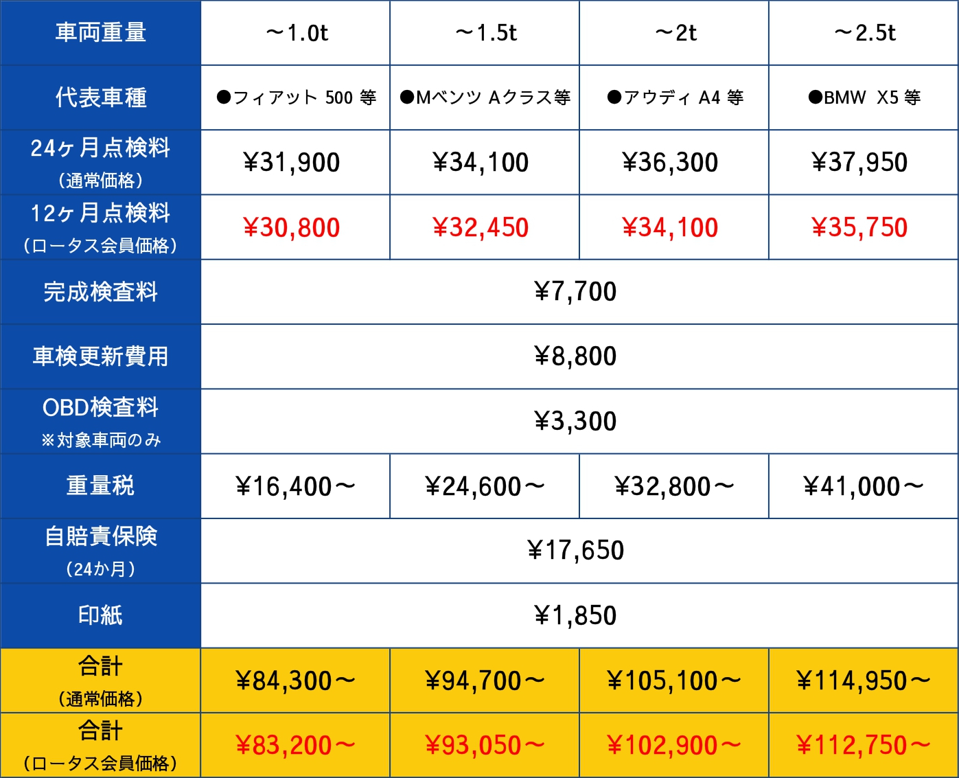 また、車検証の写真をいただければ基本料金+経費+エンジンオイル,ブレーキオイルなどの消耗品を含めた概算のお見積りは無料で作成できますので、ぜひお気軽にお問い合わせください。
